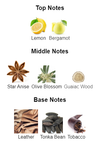 | BASE NOTES | Leather, Tonka Bean and Tobacco |