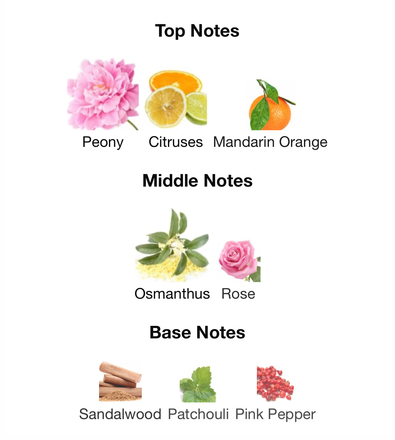 | TOP NOTES | Peony, Citruses and Mandarin Orange |